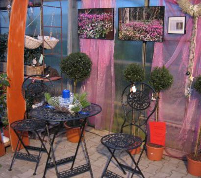 Kugelig geformte Hochstämmchen,sind nicht nur eine Augenweide, sie laden – nach Feng Shui –auch gute Geister zum Verweilen ein. Sie sind die idealen Pflanzen rechts und links von einer Eingangstür. Nehmen Sie Platz auf unseren Verkaufsstühlen, informieren Sie sich über die Freilandkamelien und die Wildalpenveilchen Chronik.